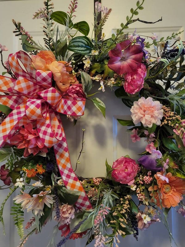 Spring/ Summer wreath, year round. Great for inside also.. Great gifts.